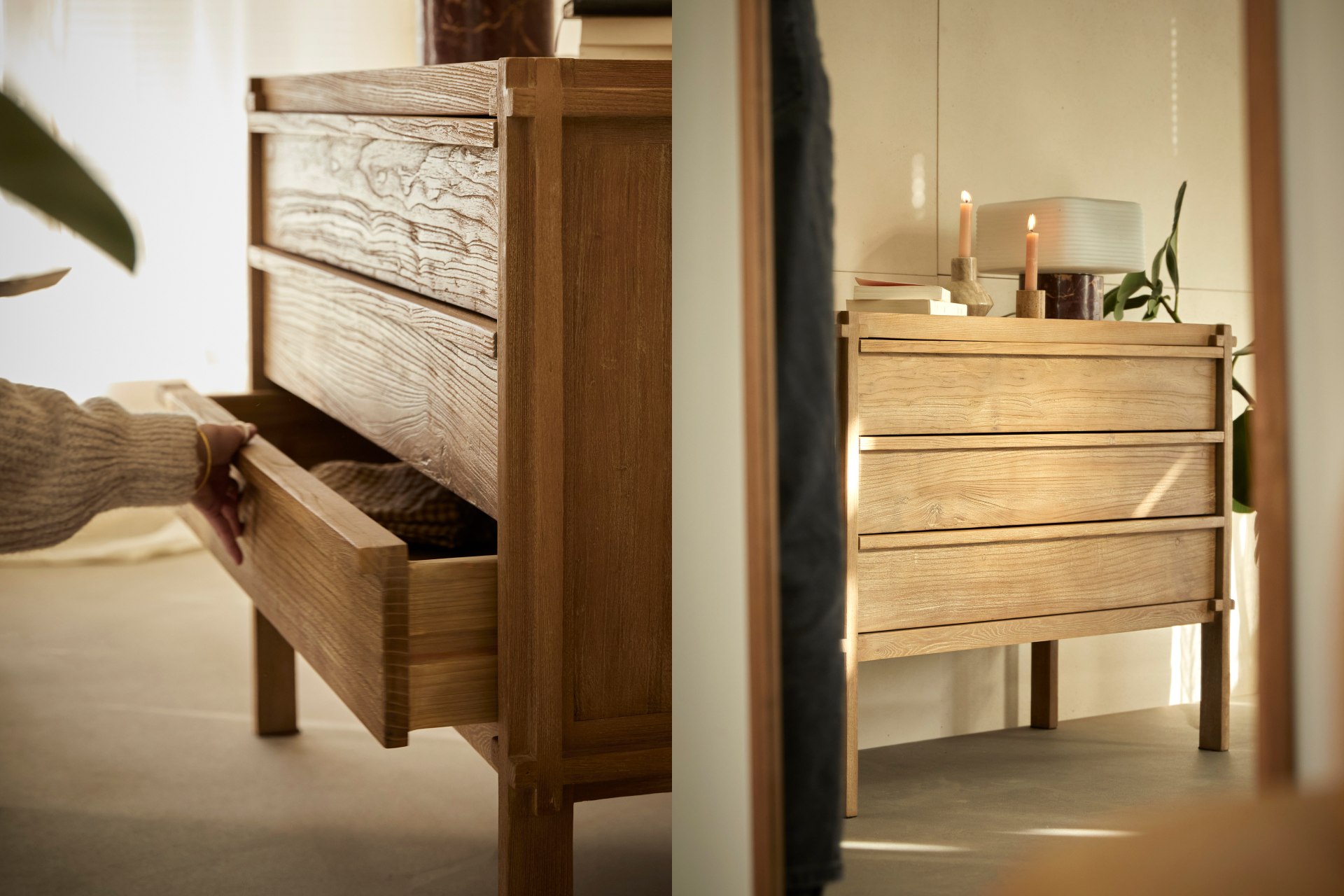 The Jade collection blends the natural nobility of solid sheesham wood with the freshness of green marble. A balanced, timeless pairing.