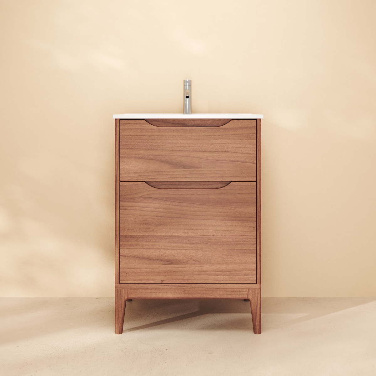 Solid mango wood and ceramic bathroom cabinet 60 cm