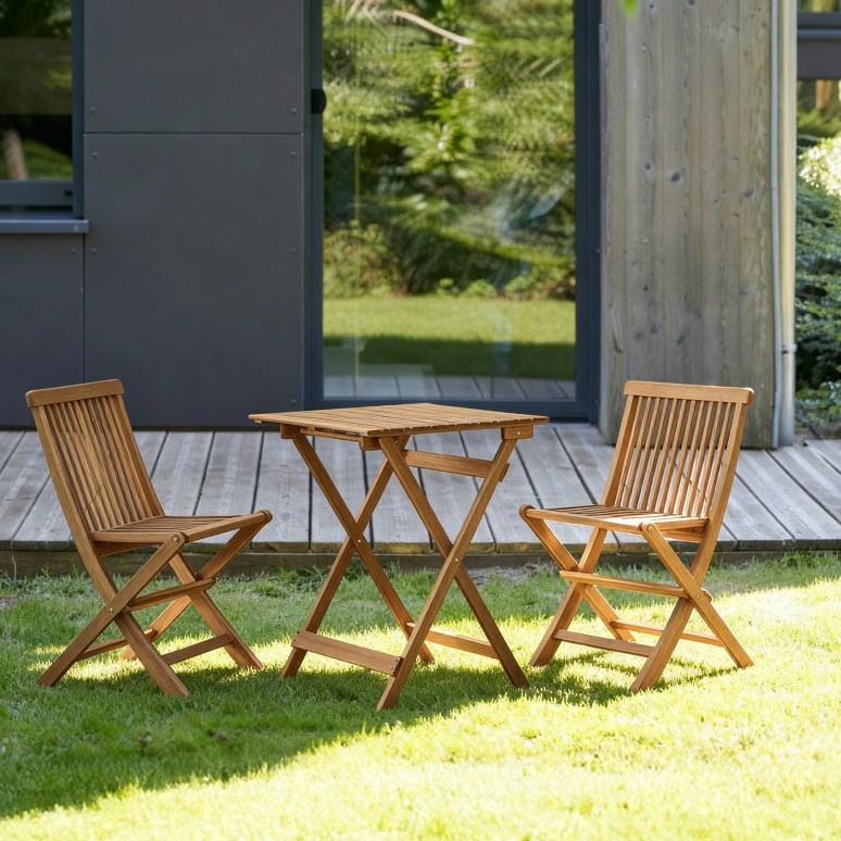 Solid acacia garden set with acacia, 2 seats