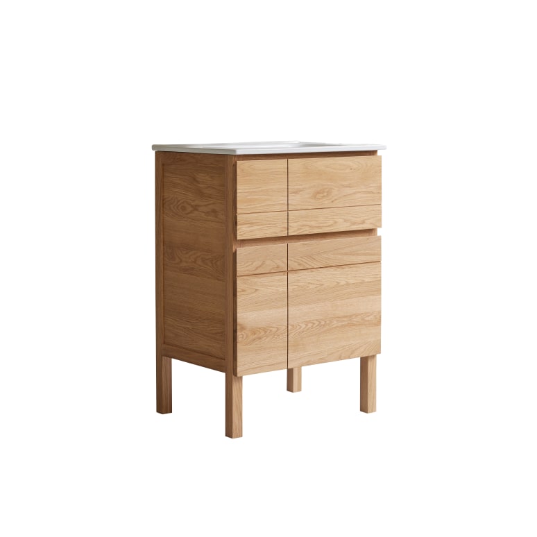 Solid oak and ceramic bathroom unit 60 cm