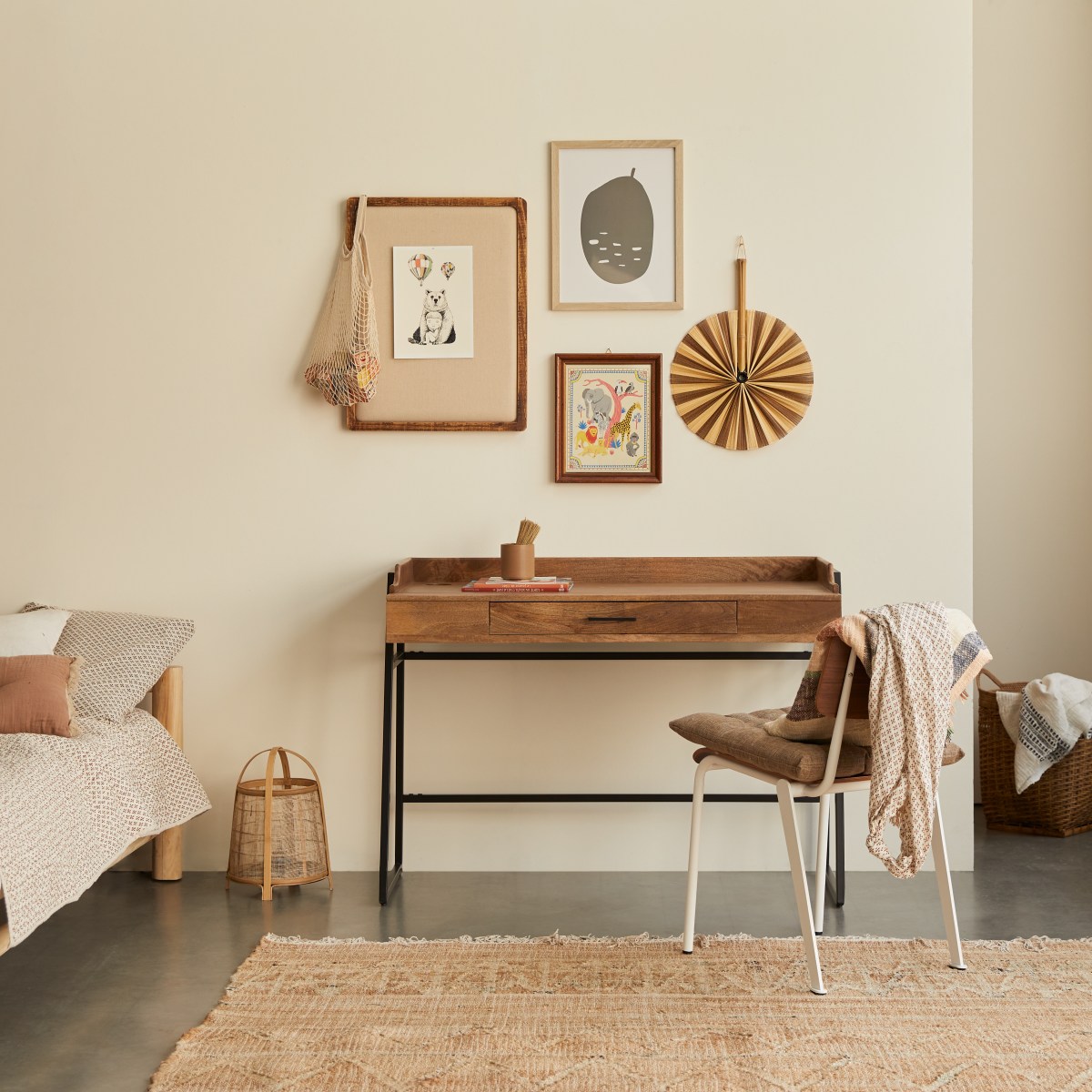 Children's desk in solid mango wood and metal