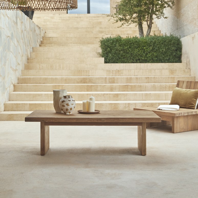 - FSC®-certified solid reclaimed teak: sustainable forestry
