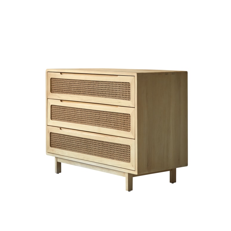 Solid elm and cane chest of drawers