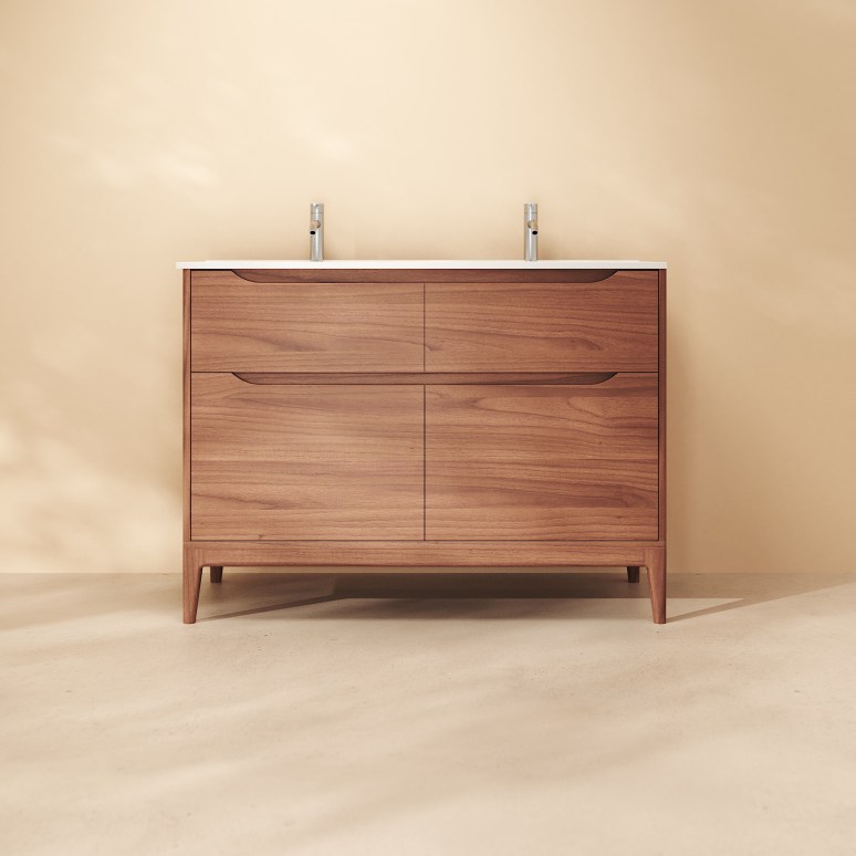 Solid mango wood and ceramic bathroom cabinet 120 cm