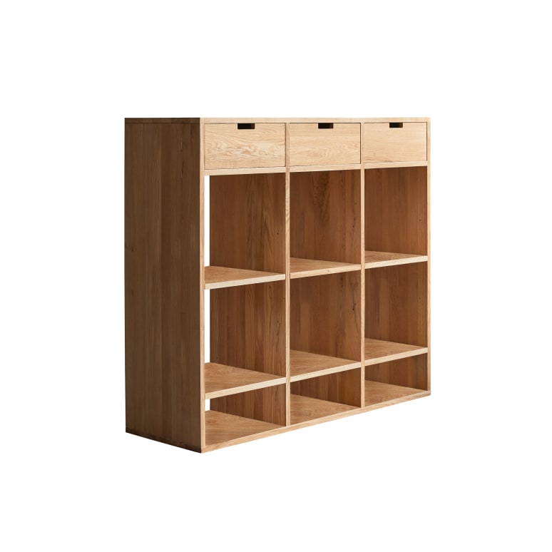 *9 open compartments on 3 levels: