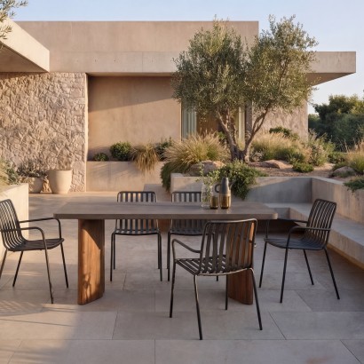 Garden Table in solid acacia and dark grey cement, 6/8 pers.