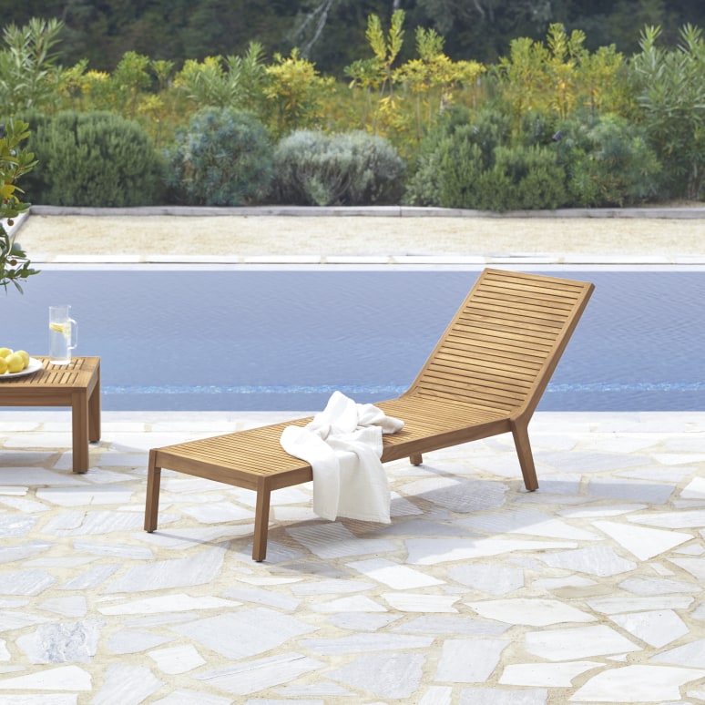 Garden lounger in solid teak