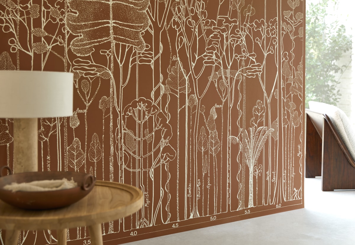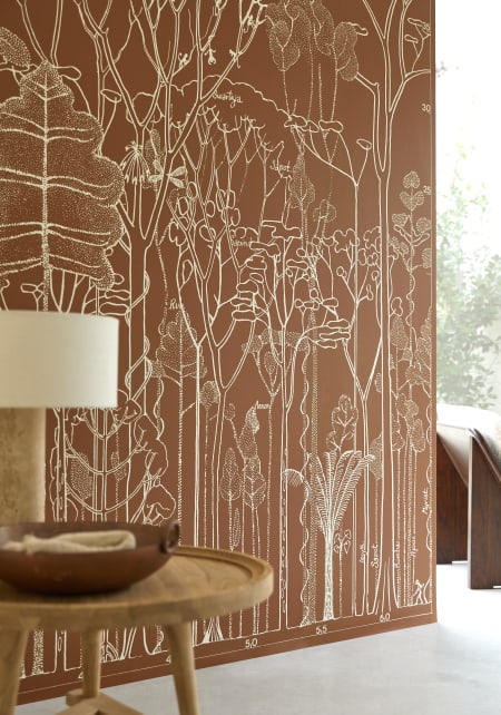Bien Fait and tikamoon: a committed partnership, inspired by the forest. The Bien Fait interior design brand and tikamoon, specialists in solid wood furniture, are proud to announce their ground-breaking collaboration. This union highlights their shared values of sustainability, respect for the environment and love of nature. At the heart of this special partnership is a wallpaper by the eminent botanist Francis Hallé, produced by Bien Fait and now available in two colours exclusive to tikamoon: a vibrant forest green and a warm terracotta. Occupying the boundary between art and science, this unprecedented wallpaper of a forest profile, invites us to take a journey of awareness, right into the heart of a friendly forest.